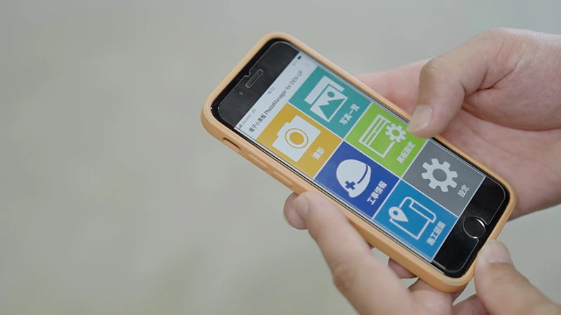 松本様:PhotoManagerは去年、入札工事で初めて活用しました。最も大きな変化は、黒板を手で書く作業が一切なくなり、全てスマホで管理できるようになったことです。特に狭い場所での撮影が多い工事現場では、黒板が少し切れてしまったりすることもあったのですが、PhotoManagerのおかげでそんな心配はなくなりました。1,000枚近い写真を撮ったのですが、フォルダで分けて管理できるなど、便利な機能が多く、迷うことなく使いこなせました。大規模工事では非常に役立ちました。
