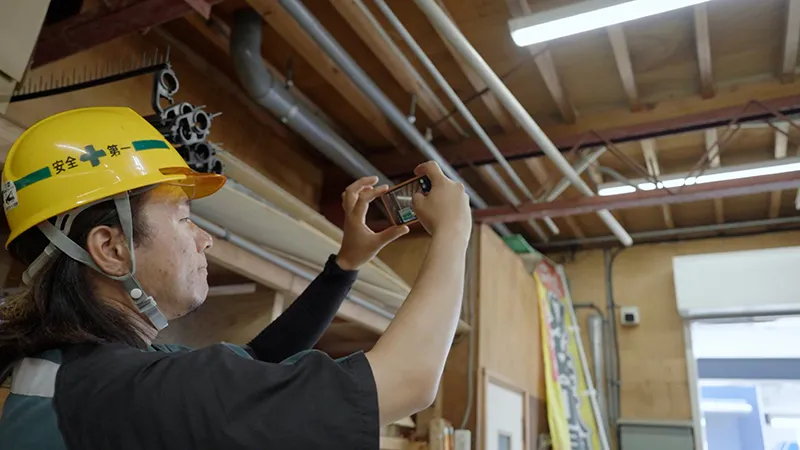 松本様:基本的に工事担当者全員がKANNAを活用しています。施工管理の基本的な情報は専務が入力し、担当者はその情報をもとに作業内容を確認します。写真を見ながら、現場スタッフに共有するといった形で情報共有を行っています。施工中や完了後の写真も、現場のスタッフがKANNAにアップロードしています。施工前には、アップした写真を見ながら、状況や施工場所、例えばトイレや照明の位置などを確認し、作業を開始します。作業中や完了後も写真を撮って取り込み、チャットで専務に完了報告をしています。