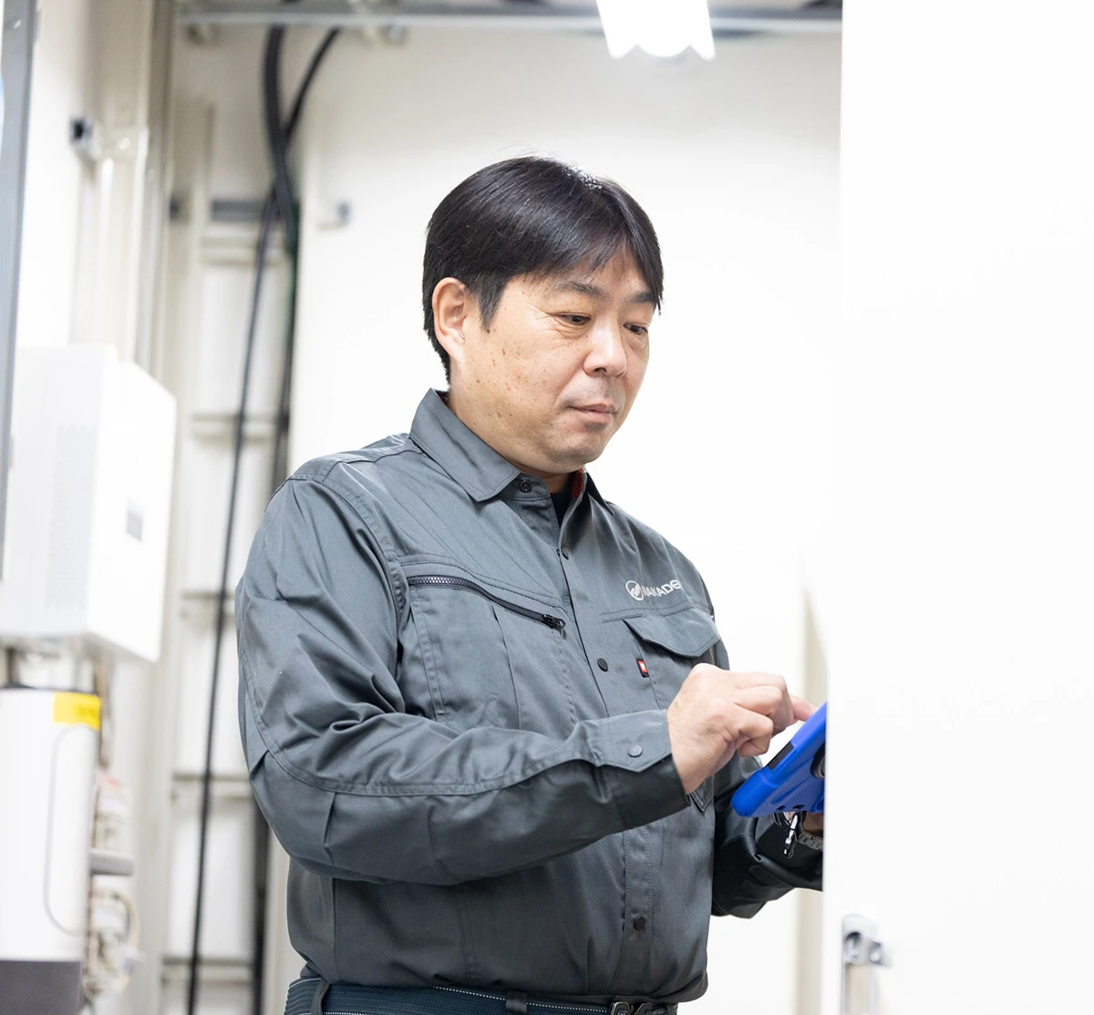 - 主な業務内容:建設事業部では大型で長期の工事現場を担当。埼玉県やさいたま市などの公共工事の請負も行う。約6年前にリニューアル事業部を立ち上げ。主にエンドユーザーからの依頼を担当し、修繕や設備の更新など、比較的短納期の仕事を行う。近年は、自家消費型の太陽光発電設備工事や蓄電池の工事といった再生可能エネルギー関連の工事も行う。