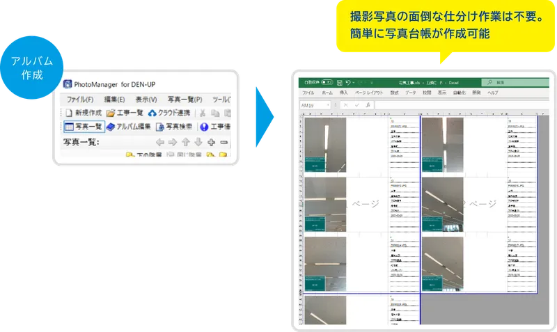 工事写真の台帳を作成する際は、必要な項目や写真の並べ方のルールがあるため、いざ作成しようとすると予想以上に手間がかかるものです。